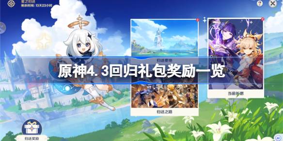 官方为回归玩家带来了回归礼包和奖励,很多回归玩家都想知道回归奖励有哪些?本期小编为大家带来原神4.3回归礼包奖励一览,一起来看看吧! 原神4.3回归礼包有什么 触发条件 1、超过14天没有登录游戏 2、玩家冒险等级达到10级 3、45天内未触发过回归奖励 奖励一览 岁时累记 1、第一天:100 阅读全文...