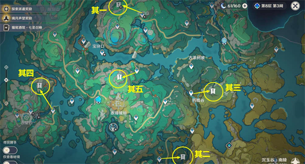 原神4.4奇馈宝箱位置大全 4.4【沉玉谷】奇馈宝箱位置一览 1、【通幽纨扇】 位置:古树茶坡右侧锚点东侧岸边。 获取方式:击败岩史莱姆。 2、【过门见山】 位置:药蝶谷东北山上。 获取方式:击败盗宝团、愚人众。 3、【若市门庭】 位置:药蝶谷东北山坡上。 获取方式:击败盗宝团。 4、【本固枝荣】 位置:翘英庄西侧河谷中。 获取方式:击败冰史莱姆。 5、【柳暗花遮】 位置:翘英庄西侧山坡上。 获取方式:击败丘丘人。 6、【远始为容】 位置:翘英庄西南侧山路上。 获取方式:击败愚人众。 7、【晴雨皆宜】 位置:古树茶坡西侧河岸边。 获取方式:击败丘丘人。 8、【鲤贯鸢羽】 位置:灵濛山山坡上。 获取方式:击败丘丘人。 9、【一缕幽香】 位置:遗珑埠石碑门下 获取方式:完成解密。 10、【常亮烛火】 位置:遗珑埠,剑匣镖局前方的巷子中。 11、【折风阻火】 位置:暝垣山山坡顶。 获取方式:击破6个风史莱姆开启。 12、【寸尺之楼】 位置:暝垣山山崖上。 获取方式:击败盗宝团。 13、【辟雨留光】 位置:宝玦口岸边。 获取方式:完成元素微粒挑战即可。 14、【专于一心】 位置:赤璋城垣神像东北方。 获取方式:击败玄文兽。 15、【深谷静暇】 位置:赤璋城垣遗迹边。 获取方式:击败盗宝团。 16、【茗乡田舍】 位置:药蝶谷左侧锚点的山崖上。 获取方式:击败丘丘人。 17、【如聚波澜】 位置:悬练山北方的山坡亭子旁。 获取方式:击败盗宝团。 18、【玉带悬江】 位置:悬练山上方山洞中。 19、【肃音震响】 位置:悬练山北方山下。 获取方式:丘丘游侠。 20、【繁简由心】 位置:赤璋城垣下方锚点的山坡上。 获取方式:击败3只玄文兽。 原神:沉玉谷香器铭文解密完成方法是什么 沉玉谷香器铭文解密方法介绍 通关了以后我们就可以获取苍灵鲤还有三个宝箱,这个机关的话难度还是可以的,需要我们根据香器铭文对话提示获得这两个供奉物品就可以了。 也就是需要找到对应的提示地点,然后找石块,然后就全部复位,第一个提示位置的石块要多用用的。 苍灵鲤全部找到供奉之后然后这个浮锦姐姐就可以恢复人形态,还是比较的不错的结局了。"> 原神》4.4奇馈宝箱位置在哪里 奇馈宝箱位置大全" /> 原神4.4奇馈宝箱位置大全 4.4【沉玉谷】奇馈宝箱位置一览 1、【通幽纨扇】 位置:古树茶坡右侧锚点东侧岸边。 获取方式:击败岩史莱姆。 2、【过门见山】 位置:药蝶谷东北山上。 获取方式:击败盗宝团、愚人众。 3、【若市门庭】 位 阅读全文...