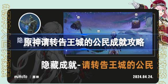「请转告王城的公民...」是原神4.6版本枫丹-旧日之海内隐藏成就之一,想要达成该成就需要完成魔像的挑战。以下是原神请转告王城的公民成就的详细攻略,一起来看看吧!原神请转告王城的公民成就怎么达成任务概述:与魔像对话后,完成魔像的挑战任务奖励:1个隐藏成就+1个华丽+1个珍贵+1个奇馈宝箱预计用时:1 阅读全文...