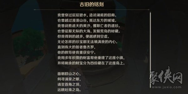 原神古旧的纸条位置在哪?原神古旧的纸条一共有四个都是挖掘的宝箱,全部收集之后可以获得成就根本就没宝藏嘛。很多小伙伴还不知道原神古旧的纸条位置在哪,下面给大家整理了原神古旧的纸条位置一览,让我们一起来看看吧。 面朝群山之心, 何寻清泉之眼, 请至首角之顶, 远眺吐珠之岛。 奖励:成就【根本就没藏嘛 阅读全文...
