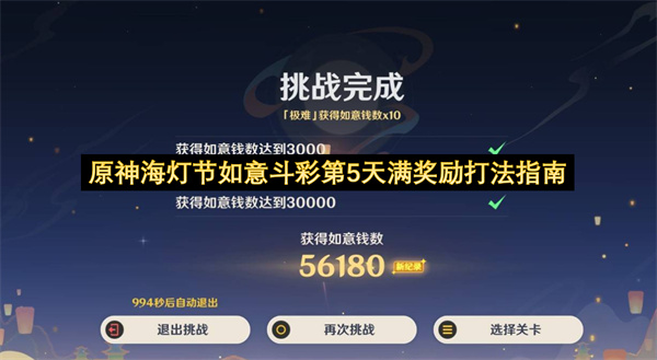 原神海灯节如意斗彩第 5 天满奖励打法指南 《原神》海灯节活动 “如意斗彩” 已进入第五天,本关怪物强度与积分倍率显著提升,但只要合理搭配阵容、掌握出手顺序,仍能稳定拿满奖励。 一、核心奖励目标 完成「极难」难度挑战,可获得如意钱数 ×10; 累计获得如意钱数达到 3000、30000 阅读全文...