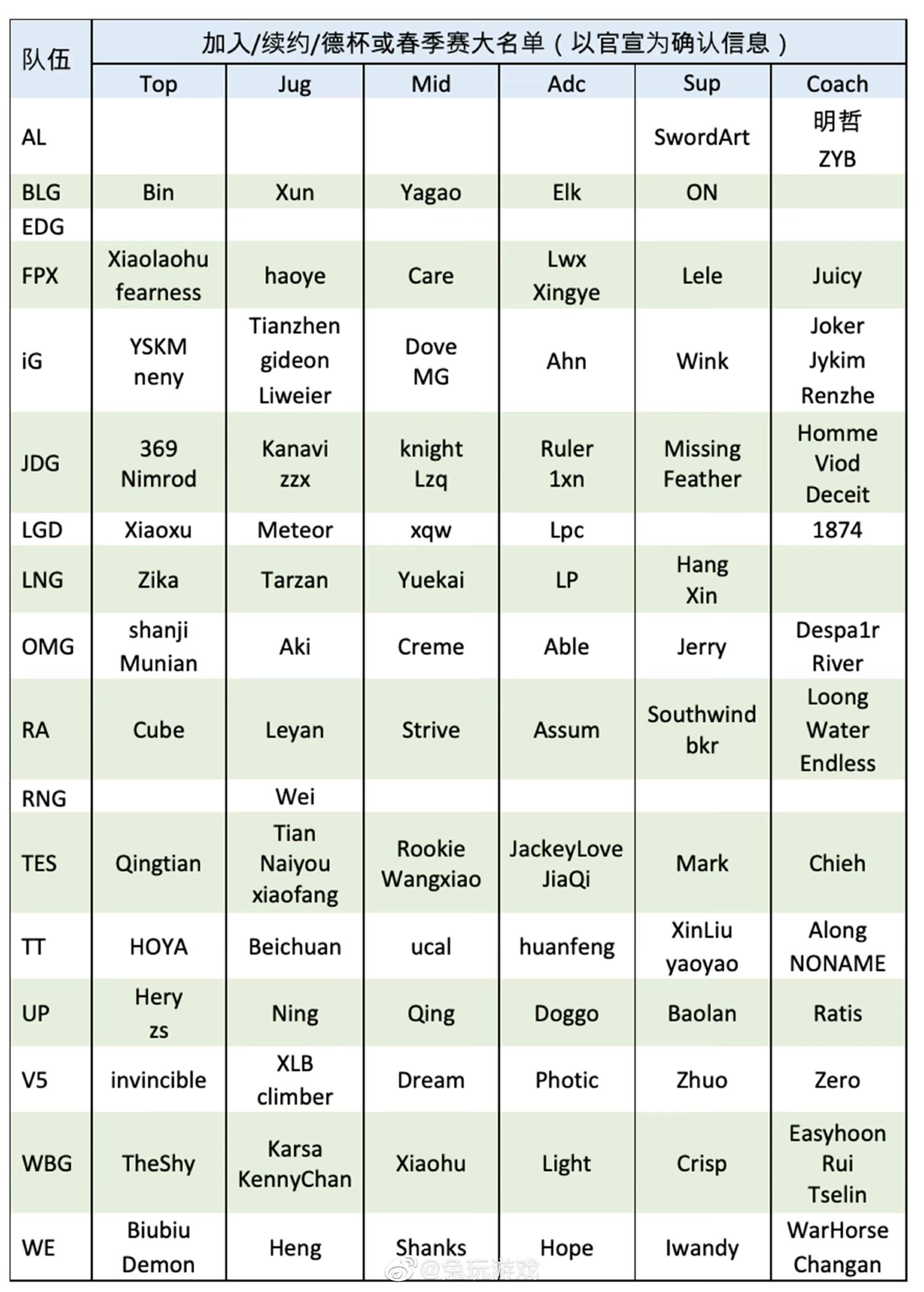 作为国内英雄联盟战区的LPL,不管啥时候都备受瞩目,这不,新赛季的到来,让网友们对LPL转会最新情况兴致勃勃。转会期结束各大战队名单公布!来看看有那些银河战舰! 首先JDG的阵容也算是豪华了,上单369打野kanavi中单左手,下路补强尺帝,属于是银河战舰了,唯一隐患可能是左手犯病出一手破舰者。 阅读全文...