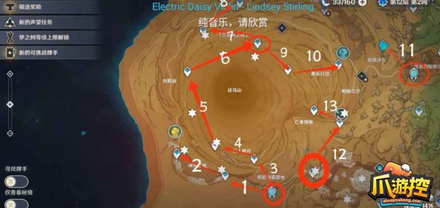 直接奉上路线图 画圈圈的地方是需要传送的锚点位置(4次) 其中我也给各位用数字标记好了 直接跟着跑就可以 路上有一些草神瞳各位有需求就顺便收集一下 点位就在图上 跑了刚好半个小时,其中花了一些时间标点,所以正常来说二十分钟就能跑完整个千壑沙地 注意事项 ①7和9中间那个秘境是要解密的 我懒得动脑 阅读全文...