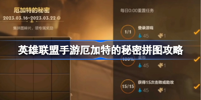 英雄联盟手游最近开启新活动厄加特的秘密,需要玩家完成拼图,才能获得奖励,下面小编为大家带来英雄联盟手游厄加特的秘密拼图攻略,感兴趣的小伙伴一起了解一下吧。 英雄联盟手游厄加特秘密拼图答案 活动:厄加特的秘密 时间:2023.3.16~2023.3.22(每天凌晨0:00重置任务) 奖励: -完成 阅读全文...