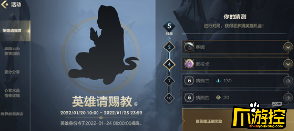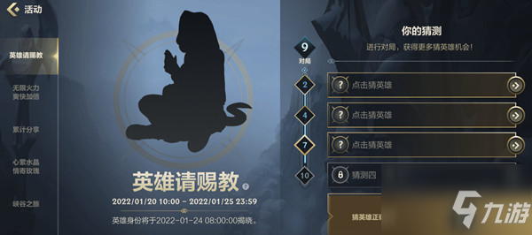 英雄联盟手游猜英雄第一个是谁,不少玩家都在询问,那么本次活动大家如何找到答案呢,下面为大家介绍英雄联盟猜英雄活动答案详解。 英雄联盟猜英雄活动答案详解 LOL英雄联盟手游英雄请赐教活动猜英雄答案是什么? 在LOL手游中今日上线了一项英雄请赐教的活动,活动时间为1月20日-1月25日。 玩家们通过 阅读全文...