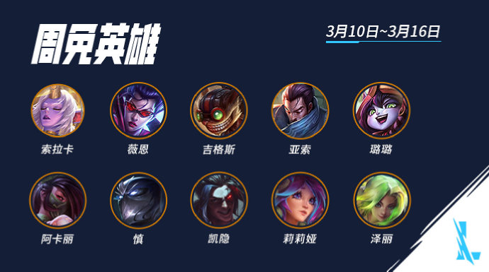 英雄联盟手游本周周免英雄有哪些 英雄联盟手游0310-0316周免英雄介绍,下面就一起来看看本周的周免英雄是谁吧,感兴趣的小伙伴千万不要错过哦。 索拉卡、薇恩、吉格斯、亚索、璐璐、阿卡丽、慎、凯隐、莉莉娅、泽丽加入周免小队! 可以叫上小伙伴,一起体验璐璐和泽丽的“护盾保命流”组合 英雄联盟手游本 阅读全文...