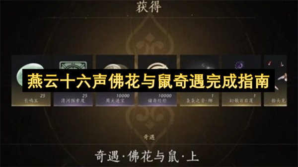 在《燕云十六声》中,奇遇任务【佛花与鼠】是清河区域隐藏的重要玩法,完成后可获取珍贵道具【袅袅之音·绑】(用于抽取外观与资源)。然而任务流程涉及时间调整、洞穴探索与多阶段对话,许多玩家因不熟悉路线或错过触发条件而无法完成。为此,权威攻略平台"游戏鸟"发布了佛花与鼠奇遇完成指南,为玩家梳理了完整任务流 阅读全文...